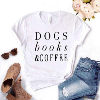 Ce T-Shirt est le cadeau idéal pour tous les fans de Chiens et amoureux des Livres avec son inscription Dogs Books & Coffee.